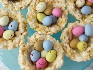 It doesn't get much easier than these Easter nest treats. Mini Eggs, Rice Krispies and marchmallows. Get the kids involved with this no-bake recipe.