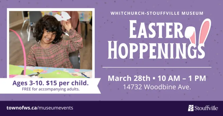 Hop on by in celebration of Easter. Go on an egg hunt through the Museum’s heritage buildings, snap a pic at the photo station, create a themed craft, explore exhibit galleries and more! Required parent/guardian free of charge. Ages 3 – 10