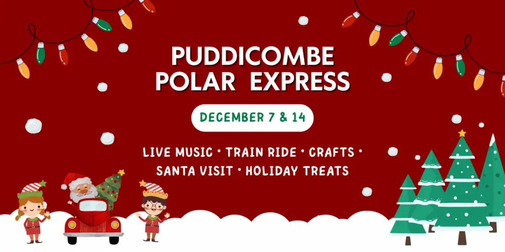 Ride the Polar Express! Enjoy live music, crafts, Santa photos & festive food + wine pairings at Puddicombe Estate.