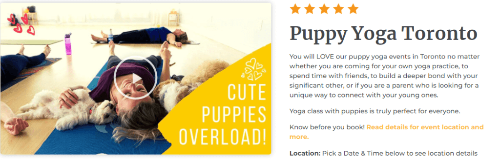 This event is perfect for anyone who needs a little extra lovin’ on their yoga mat. Whether you’re looking for a way to calm down after a long day/week or want to relax with friends and family, this class might just what you need! Your puppy yoga class will be filled with stretches, cuddles, and kisses from some of the cutest puppies around.