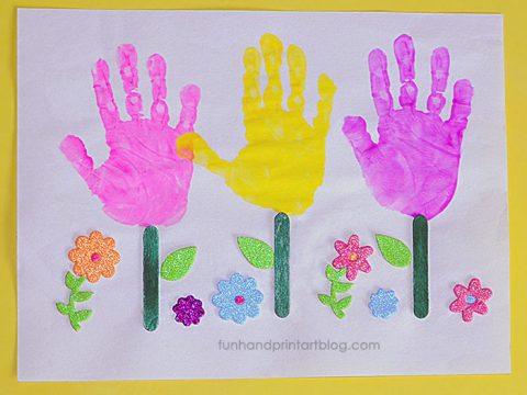A fun flower craft for little one's. This simple activity just calls for craft paint and a set of hands!
