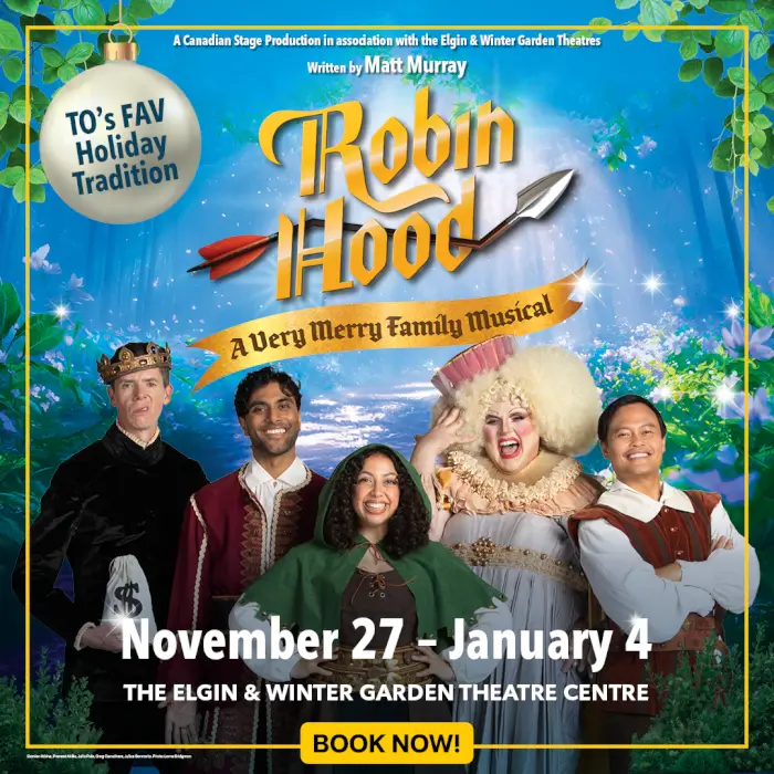 Toronto’s Favourite Holiday Panto Returns! Get ready to root for the underdog and boo the baddies! This year, the legendary outlaw tale takes on a bold twist—our Robin is a spirited, savvy heroine leading her merry band of misfits in a fight for justice and kindness. An intergenerational celebration that’s perfect for the whole family. Grab your loved ones, don your green tights, and join us for a Panto experience full of mischief, melody, and meaning.