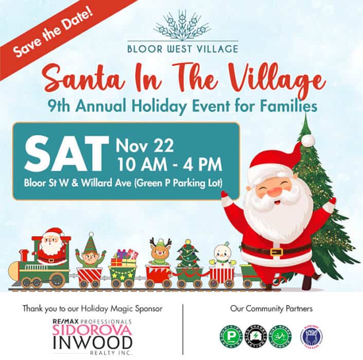 Bloor West Village Bloor West Village, Toronto, Ontario, CanadaGet ready for a holly-jolly day in the Village! Bloor West Village is kicking off its 9th Annual Santa in the Village, our biggest holiday tradition. 🗓️ Sat, November 22 | 10 AM – 4 PM 📍 Green P Parking Lot (Carpark 91), 265 Armadale Ave 🎁 What’s waiting for you: 📸 Photos with Santa […]