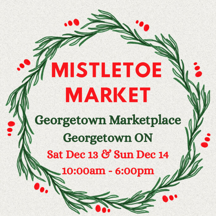 Georgetown Market Place 280 Guelph Street, Guelph, ON, CanadaJoin us for our 4th Annual Mistletoe Market and shop local this holiday season. Enjoy a festive weekend filled with artisans, bakers, makers, local services, live holiday music, prizes, treats, drinks, kids craft station including decorating your own ornament, pictures with Santa, gift wrapping station, collecting toys for charity. Find us inside the cozy indoor main corridor of Georgetown Marker Place!