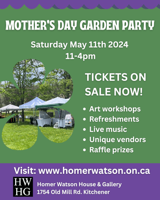 Homer Watson House & Gallery 1754 Old Mill Rd, Kitchener, Ontario, CanadaThe annual Mother’s Day Garden Party celebrates mothers and all others who care, love, and nurture us. This market is about mothers and makers! Visitors will enjoy an afternoon with talented and unique vendors, workshops that inspire, live music, sweet treats and so much more! All are welcome to participate in the Mother’s Day Garden […]