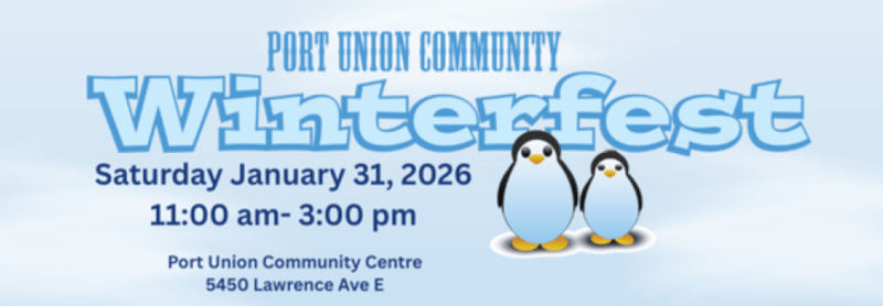 Port Union Community Centre 5450 Lawrence Avenue East, Scarborough, ON, CanadaOn Saturday January 31st Port Union Winterfest will be celebrating their 26th Festival, at Port Union Community Centre starting at 11:00 am until 3:00 PM. The festival features a market place, live entertainment, games and activities for kids, clothing swap, dog show and food.