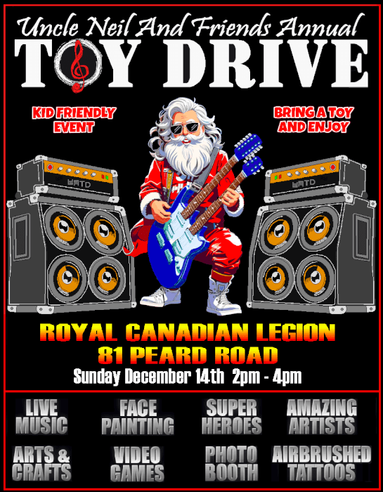 Royal Canadian Legion Branch 345 81 Peard Road, East York, Ontario, CanadaHoliday ConcertsJoin Uncle Neil and Friends for their Annual Toy Drive at the Royal Canadian Legion Branch 345! Bring a smile to a child's face this holiday season by donating a new, unwrapped toy. Let's spread joy and cheer to those in need. Don't miss out on this opportunity to make a difference in our community. […]