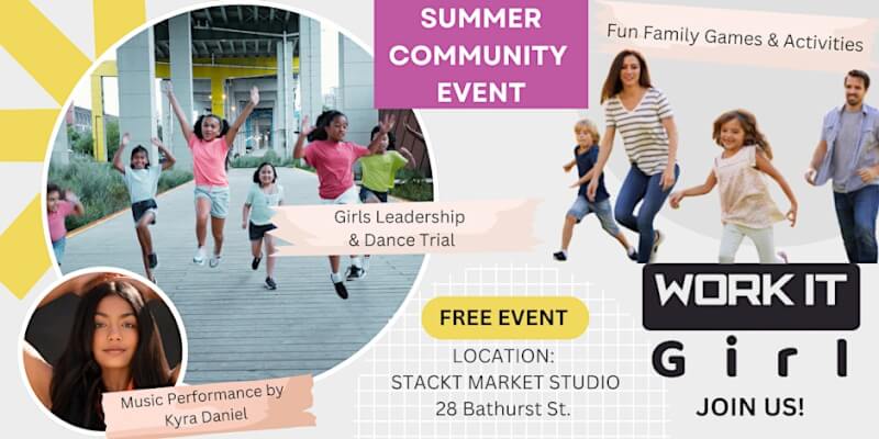 stackt market 28 Bathurst Street, Toronto, ON, CanadaYou're invited to our Free WORK IT Girl Summer Community Event! Join our Toronto West Community of families and friends for some interactive games, dancing and musical performances. During this summer event, we will be running our signature leadership and dance class for young girls aged 6-10 years old. WORK IT Girl offers confidence-boosting leadership […]