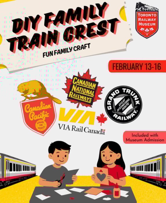 Toronto Railway Museum 255 Bremner Blvd., Stall 17, Toronto, ON, CanadaJoin us on Family Day weekend for crafts and tours. This year CP Cape Race will be open to visitors inside Stall 17 with a DIY train crest activity. The Toronto Railway Museum will be open extended hours on Monday, February 16 from 12pm to 5pm. All activities are included with admission and are appropriate for ages 3+.